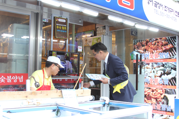 캠페인은 해운대재래시장 일대 음식업 밀집지역을 순회하며, 음식업 재해사례 및 작업 전 안전점검의 중요성을 전파했다.