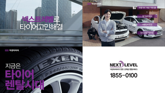 ▲타이어 렌탈서비스 '넥스트레벨' 신규 TV광고 스틸컷. (사진제공=넥센타이어)