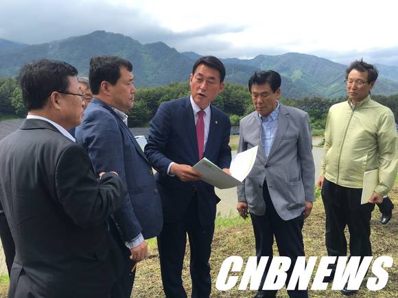 ▲황영철 국회의원 당선자는 24일 인제군 방문 현안토론회를 가진 뒤 상남면 하남리에 위치한 국립생물자원관 부지로 이동해 사업장을 점검했다.(사진=인제군청 제공)