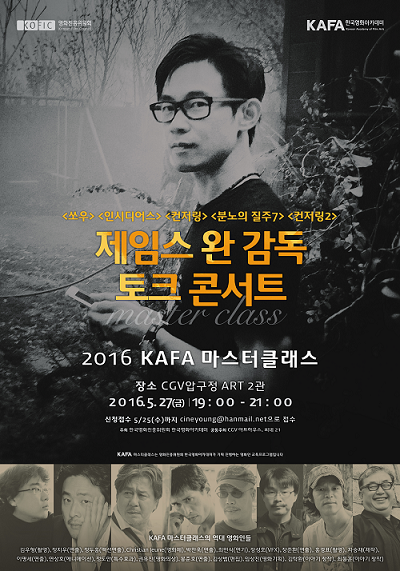 이번 마스트클래스는 토크 콘서트 형식으로 진행하며, 제임스 완 감독이 한국의 우수 영화학교에서 강연을 하고 싶다는 의사를 피력하여 전격 이루어졌다.