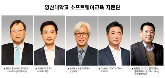 영산대(총장 부구욱)는 명예총장인 김진형 소프트웨어정책연구소장을 필두로 조현정 ㈜비트컴퓨터 대표이사 회장, 형태근 전 방송통신위원회 상임위원, 김영환 전 (주)KT네트웍스 대표이사, 임정욱 스타트업얼라이언스 센터장(전 다음커뮤니케이션 글로벌부문장) 등 총 5명의 전문가들이 영산대 소프트웨어교육 자문단으로 대학 교육에 참여하게 된다고 25일 밝혔다.