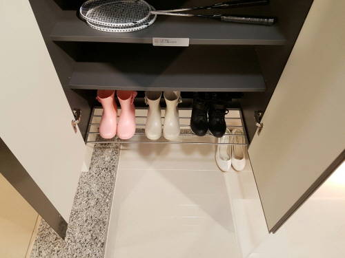 ▲접이식 수납장이 적용돼 부츠 보관에 용이한 '워킹케어 신발장'. (사진=롯데건설)