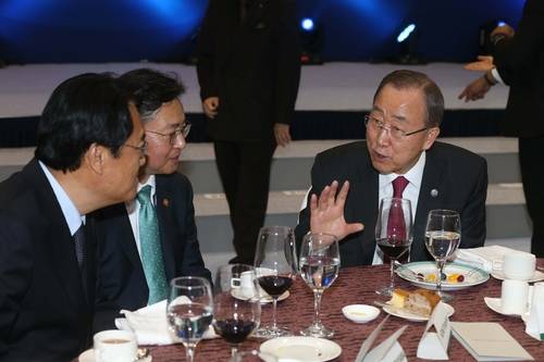 ▲반기문 유엔사무총장(오른쪽)이 25일 오후 제주 ICC에서 열린 제주포럼 만찬에 참석해 홍용표 통일부 장관(가운데), 새누리당 정진석 원내대표와 대화하고 있다. [중앙일보 제공]![반기문 유엔사무총장(오른쪽)이 25일 오후 제주 ICC에서 열린 제주포럼 만찬에 참석해 홍용표 통일부 장관(가운데), 새누리당 정진석 원내대표와 대화하고 있다. [중앙일보 제공]](/data/photos/20160521/art_1464222927.jpg)