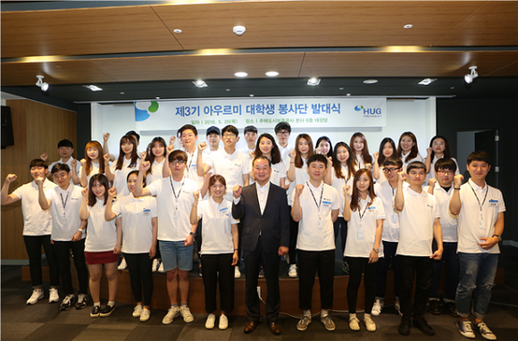 주택도시보증공사(HUG, 사장 김선덕)는 26일 부산 본사 대강당에서 대학생 봉사단 '아우르미 3기' 발대식을 가졌다.