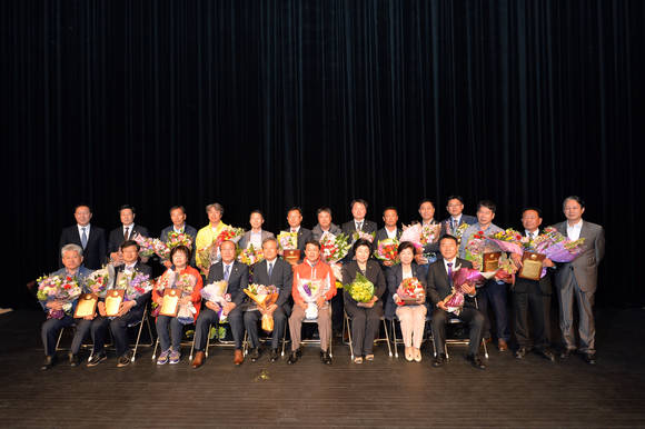 이춘만 인제군의원(사진 뒤열 오른쪽부터 여섯번째)은 26일 오후 정선 아리랑센터에서 열린 강원발전 의원한마음대제전 개회식에서 강원도 시·군의회 의장협의회가 제정한 강원의정봉사상을 수상했다. 한편 제1회 강원의정봉사상 시·군별 수상자는 박찬흥(춘천)·권영익(원주)·강희문(강릉)·정성모(동해)·김길동(태백)·김종희(속초)·정정순(삼척)·이호열(홍천)·김인덕(횡성)·강명호(영월)·임영순(평창)·진길우(정선)·박성호(철원)·류희상(화천)·이태균(양구)·이춘만(인제)·김일용(고성)·고제철(양양) 의원이다.