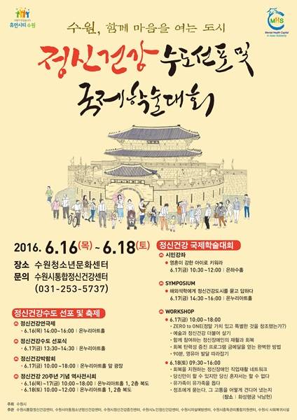 수원시는 정신건강사업 추진 20주년을 맞아 오는 6월 16일부터 18일까지 수원청소년문화센터에서 정신건강수도 선포 및 국제 학술대회를 개최한다.