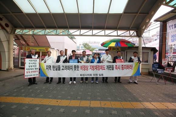 화성시의회는 지방재정제도 개편안 철회 촉구를 위해 지난 4월 28일 성명서 발표 및 5월 9일 제151회 임시회에서 결의안을 채택했고 5월 20일 김홍성 의원 외 3명의 의원들이 정부서울청사 후문에서 릴레이 1인 시위, 23일 박종선 의장외 13명의 의원들이 지방재정개악 철회요구 경기도민 결의대회에 참석하는 등 개편안 철회를 촉구하는 운동을 지속적으로 추진하고 있다.