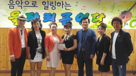 ▲울타리봉사단 가수 천둥, 이송이, 최영순, 허현희, 박창규, 전세란, 조희선 단장