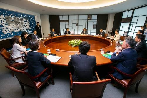 ▲더불어민주당 어버이연합 등 불법 자금 지원 의혹 규명 진상조사 태스크포스 위원들이 19일 오후 첫 현장 조사로 서울 여의도 전경련 회관을 찾아 이승철 전경련 상근 부회장등을 만나고 있다.(자료사진=연합뉴스)