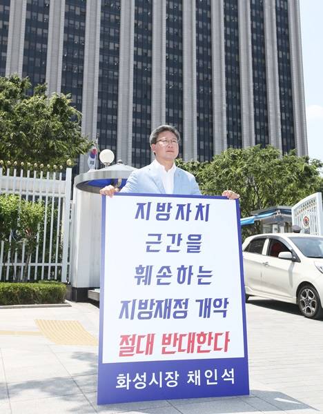 행정자치부가 법인지방소득세 공동세 전환과 불교부단체 대상 조정교부금 우선배분 폐지 및 배분방식 변경 등을 골자로 한 지방재정 개편안을 강행하기로 한데 따른 대응 조치로 채인석 화성시장은 “정부는 이번 개편안이 지자체 간 재정격차 해소를 위한 것이라고 하지만 실상은 지방자치를 말살하고 중앙 집권화를 가속화 시키려는 것”이라며 “전국 226개 지자체 중 재정자립도가 50% 미만인 단체가 232개, 무려 95%에 이르는데 이번 개편안이 시행되고 나면 나머지 5%의 지자체조차도 정부의 지원 없이는 유지될 수 없게 만드는 개악안”이라고 성토했다.