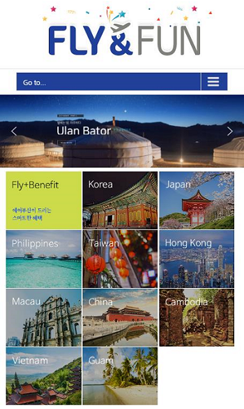 ▲FLY&FUN 웹진 사이트 메인 화면. (사진제공=에어부산)