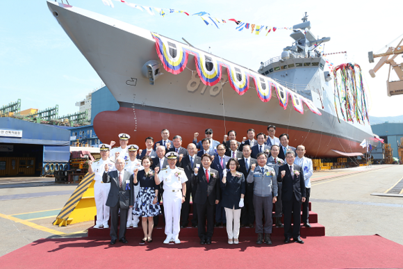 이날 진수식에는 권영진 대구시장을 주빈으로 이범림(중장) 해군사관학교장, 이성근 대우조선해양 부사장 등 해군 및 방위사업청, 대우조선해양 관계자 등이 참석했다.