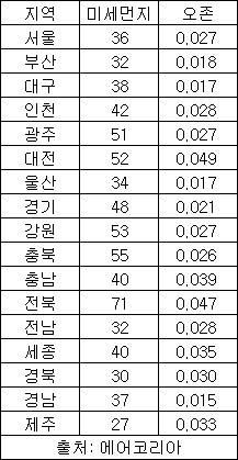 오존은 광화학 반응에 의한 오존 생성과 우리나라 주변 해상으로부터의 유입으로 인해 중서부지역과 영남권을 중심으로 농도가 높을 것으로 전망된다.