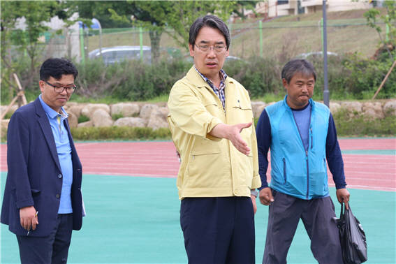 이순선 인제군수는 8일 서화면 천도리 서화운동장 조성사업 현장을 방문해 점검했다.