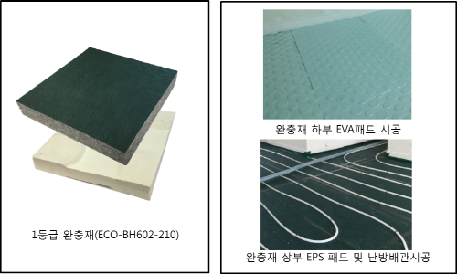 이번에 개발된 바닥충격음 차단구조는 두께 20~30mm 완충재가 적용되는 기존의 바닥구조와 달리, 층간소음완충재의 두께가 60mm에 달한다.