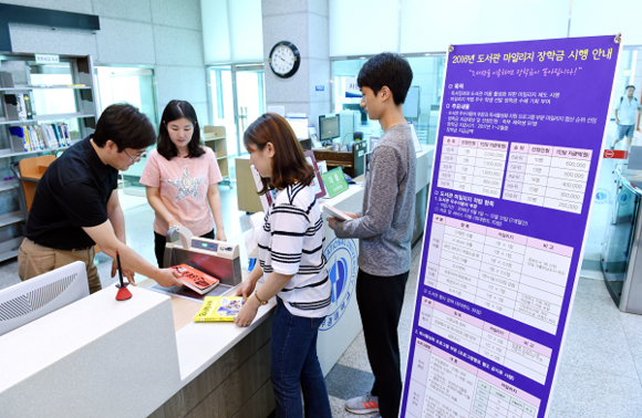 독서활동 마일리지가 높은 학생 순으로 장학금을 준다. 학생들은 도서관에서 책을 빌려 읽고 도서관 주관 행사 등에 부지런히 참석해 마일리지를 쌓을 수 있다.