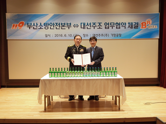 주요 협약내용을 보면, 대선주조 생산제품에 일반주택용 소방시설 홍보 및 지역 생산제품 애용 협력 등을 담고 있다.