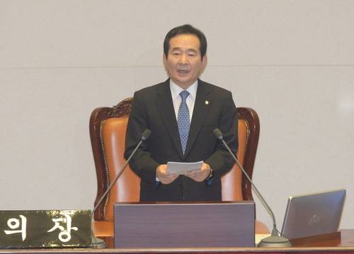 그리고 정 의장은 “남북대결, 좌우갈등, 동서갈등, 빈부격차를 부추겨 왔다. 이래서는 대한민국의 미래가 없다”며 “20대 국회는 여기에 대한 반성에서 출발해야 한다. 갈등과 차별, 분열, 불공정의 고리를 끊고 국민통합의 용광로가 돼야 한다”고 말했다.