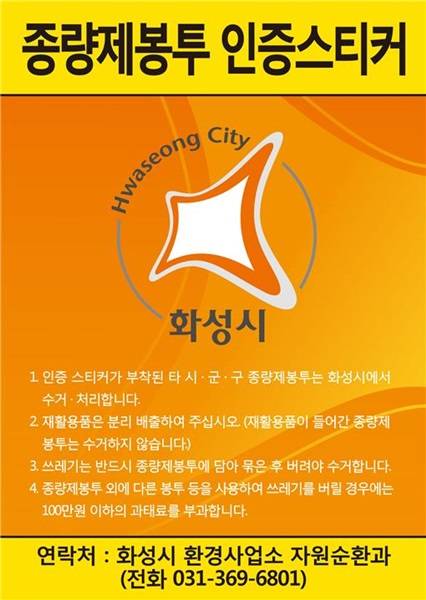 그동안 타 지자체에서 전입한 시민들은 사용하던 종량제봉투를 쓸 수 없어 전입 전 주소지에서 남은 봉투를 환불하거나 사용하지 못했지만 화성시는 지난 5월 31일 화성시 폐기물관리에 관한 조례를 개정․공포해 전입자 종량제봉투 인증스티커가 부착된 타 지자체 종량제봉투는 수거키로 했다.