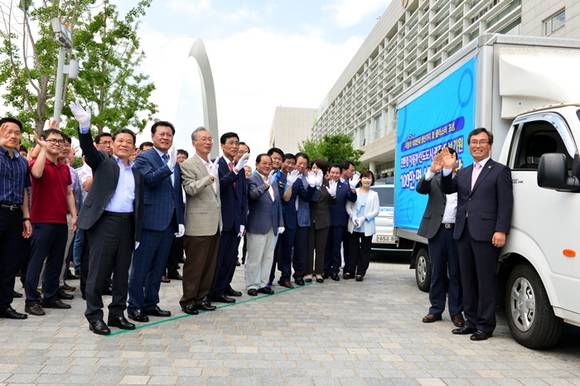 앞서 이날 오전 광주시청 앞에서 ‘친환경자동차 선도도시 조성 기원 100만 명 서명부 전달 출정식’이 열렸다.