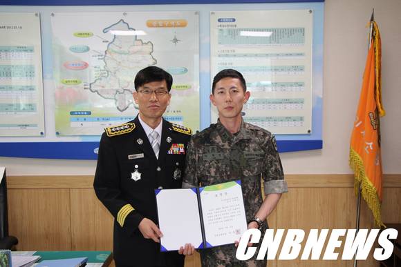 인제소방서에 따르면 인제 제12보병사단 공병대대 부사관인 이해성·이원성씨는 지난달 8일 오후 3시 57분경 인제군 북면 원통리 다이소 건물 앞에서 차주가 기어를 후진으로 놓고 하차해 운전자 없이 후진 중인 차량을 안전조치하고 차량 문에 부딪혀 늑골 통증을 호소하는 차주를 응급조치 후 119에 신고해 인명 피해를 최소화했다.