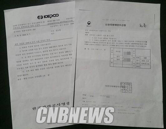 ▲인천지방해양수산청과 한국전력 사이에 오간 공문. 수산청은 “항만재개발 사업구역 안에는 국유재산 사용(전봇대 설치)이 불가하다”고 회신했다. (사진=도기천 기자)