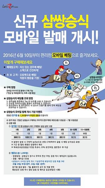 삼쌍승식 이용 방식 및 이벤트 등과 관련된 세부 내용은 한국마사회 홈페이지에서 확인 가능하다.