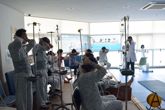 부산 힘내라병원은 16일 병원 물리치료실에서 입원환자와 내원객을 대상으로 운동교실을 개최했다.
