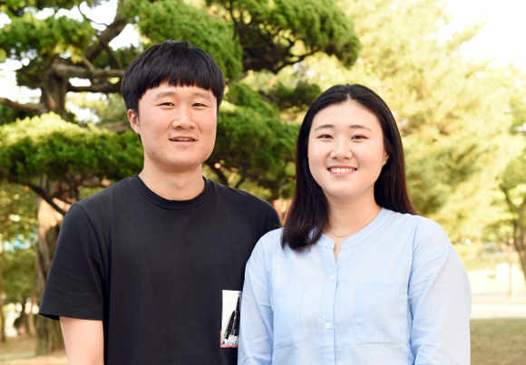 ▲'부산복지발전을 위한 대학생 아이디어 공모전'에서 대상을 받은 부경대 (왼쪽부터) 최승훈, 이수진 씨. (사진제공=부경대)