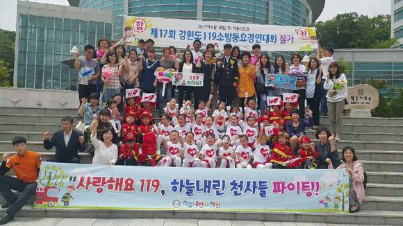 인제 하늘내린유치원이 16일 원주시 백운아트홀에서 열린 제17회 강원도 119소방동요경연대회서 인제소방서 대표로 참가해 '119사랑법'이라 제목의 소방동요를 불러 유치부 대상을 수상했다.