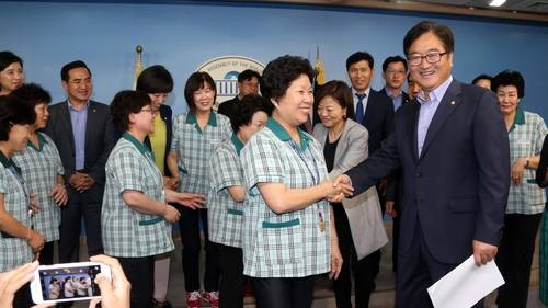 현재 국회에서 일하는 청소용역 근로자는 총 207명으로 3년 단위로 용역업체와 계약을 체결하며, 올해 12월 계약 만료를 앞두고 있어 정 의장은 비정규직인 이들을 직접고용으로 바꿀 방침이라는 것이다.