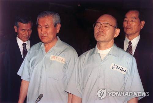 ▲전두환·노태우 등 신군부 세력은 김재규를 희대의 패륜범죄자로 몬 뒤, 김재규에게 동조했다는 이유로 계엄사령관인 정승화 육군참모총장을 숙청하고 5.17쿠데타를 일으켜 정권을 장악했다. 하지만 이들은 김영삼 정권 때 내란죄 등으로 기소돼 옥고를 치렀다. 1996년 8월 26일 12.12 및 5·18사건 등으로 재판을 받고 있는 전두환(오른쪽), 노태우 전 대통령. (사진=연합뉴스)