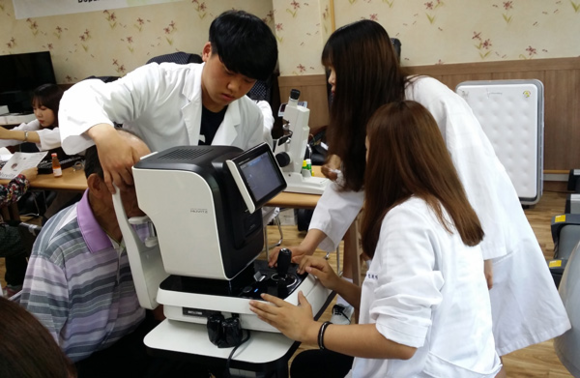 안경광학과 봉사동아리 '아이보리'는 ㈜휴비츠의 지원을 받아 매년 여름방학 시작에 맞춰 무료시력검안 및 어르신들의 돋보기를 맞춰드리는 활동을 펼치고 있다.