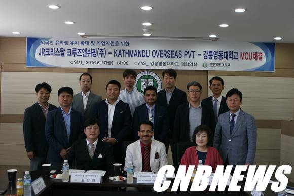 이에 강릉영동대는 최근 ㈜JR크리스털 크루즈앤쉬핑(대표 원성희)·KATHMANDU OVERSEAS PVT.LTD(대표 Mr. jeevan kumar bhanfari)와 3자 협약을 체결했다.
