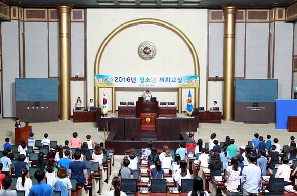경기도의회는 21일 도의회 본회의장에서 안성 문기초등학교 학생 86명과 부천 부천중앙초등학교 학생 24명 등 총110명의 학생과 도의원이 참석한 가운데 2016년 제4회 경기도의회 청소년의회교실을 열었다.