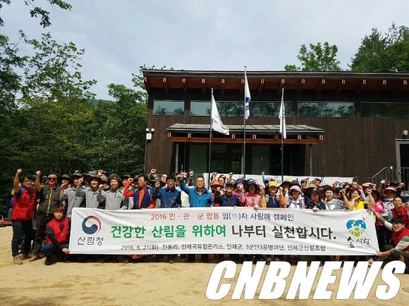 인제국유림관리소(소장 송갑수)는 21일 산림유전자원보호구역 및 백두대간보호지역으로 지정된 인제군 기린면 진동리 일원서 인제국유림관리소, 인제군, 제3공여단, 인제군산림조합, 진동1·2리 주민 등 민·관·군 100여명이 참석한 가운데 '임(林)자 사랑해·산림정화 캠페인'을 실시했다.