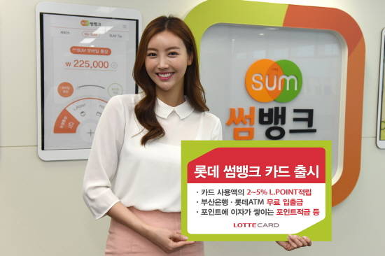 롯데카드는 22일 BNK금융그룹과 제휴해 BNK의 모바일은행인 썸뱅크 금융서비스와 롯데카드의 신용카드 혜택을 담은 ‘롯데 썸뱅크(SUM Bank) 카드’를 최근 출시했다고 밝혔다.