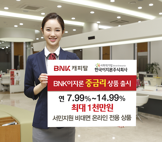 BNK금융그룹 계열사인 BNK캐피탈(대표 김일수)이 사회적 기업인 한국이지론(대표 조용흥)과 업무 제휴를 통해 중금리 대출상품인 'BNK이지론'을 22일 출시했다.