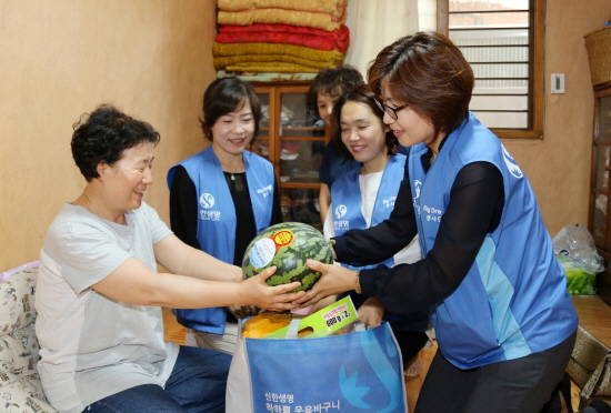 신한생명에 따르면 쿨스카프, 수박, 냉면, 삼계탕 등을 담은 ‘하하하(夏) 웃음 바구니’를 제작했고 이후 봉사팀을 3인 1조로 구성해 어르신 가정에 방문, 바구니 전달 및 담소를 나누는 시간을 가졌다.
