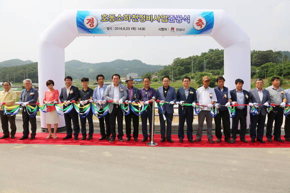 황은성 안성시장과 유광철 안성시의장, 천동현 경기도의회 부의장, 이영찬 시의원 및 주민들이 참석한 가운데 호동소하천 정비사업 준공식을 가진 호동소하천 정비사업은 미정비된 제방과 호안으로 반복적인 수해로 사유재산 피해가 발생하고 도로폭이 협소해 지역 주민의 통행불편이 많았던 지역으로 주민의 재산권 보호와 주민 불편을 해소하고자 안성시가 총사업비 34억 원을 투입해 총연장 1550m, 교량 4개소, 하천폭 13m의 하천으로 정비를 완료하게 됐다.