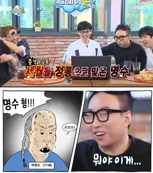 ▲웹툰 작가 이말년(왼쪽)은 ‘마이 리틀 텔레비전’에서 자신의 작업 과정을 공개했다. 인기 걸그룹 걸스데이 멤버 유라와 함께 출연해 방송 1위를 거머쥐기도 했다.(사진=MBC ‘마이 리틀 텔레비전’ 방송 화면 캡처)