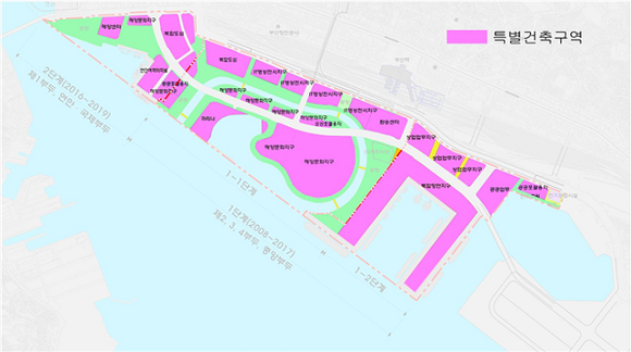 특별건축구역이란 건축물에 대한 디자인, 재료 건설기술 등을 창의적으로 구상·실현시키기 위해 건축과 관련한 일부 법령을 적용하지 않거나, 완화해 적용할 수 있도록 특별히 지정하는 구역으로, 이번에 지정한 구역은 부산항(북항) 재개발사업지구(1단계) 건축부지 상업·업무지구 등 64만8572㎡로 전체 재개발사업면적 153만2419㎡의 42%에 달한다.