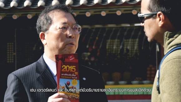▲지난 2015년 태국 공중파 채널 5에 소개된 경기도쿠폰북, 인터뷰를 하고 있는 경기관광공사 홍승표 사장