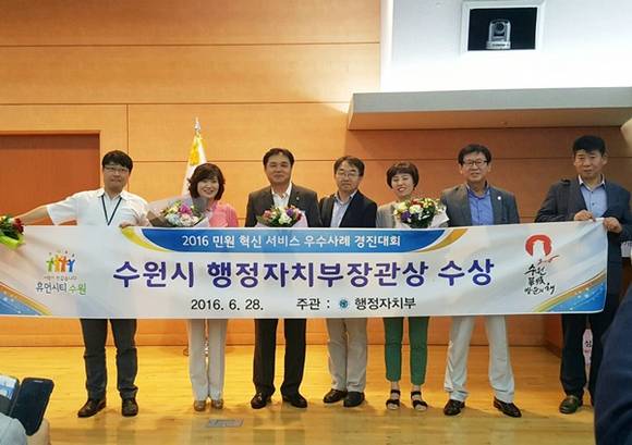 수원시는 지난 28일 정부서울청사에서 열린 행정자치부 민원서비스 혁신 우수사례 경진대회에서 중앙행정기관과 전국 광역, 기초자치단체에서 제출한 민원서비스 혁신 분야 우수사례 280여 건을 1차, 2차 전문가 심사와 경진대회 심사를 통해 선정했으며 심사 결과 시민곁愛 가사홈서비스 사업이 창의성, 실용성, 효용성, 확산성, 민관협업 등 5개 부문에서 호평을 받았다.