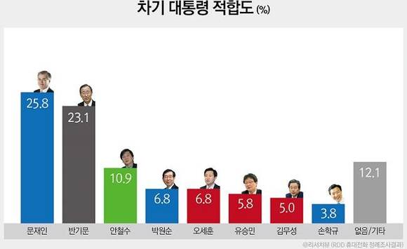 文25.8% >반기문23.1% >安10.9%…박대통령 지지율 26.6%