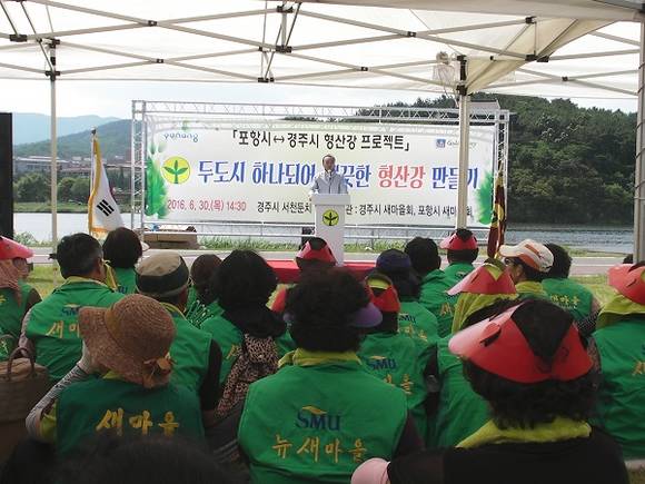 이날 행사에는 최양식 경주시장, 이강덕 포항시장과 포항・경주 새마을회원 500여명이 참여하여 형산강 수질정화를 위해 친환경EM 흙 공 던지기, EM 발효액 방류를 시작으로 하천변 정화활동과 환경보호 캠페인도 함께 진행됐다.
