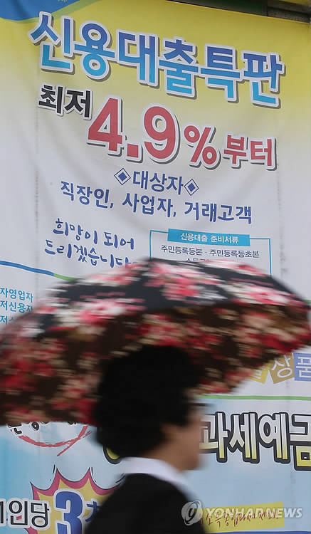 ▲한국은행이 지난달 9일 기준금리를 1.25%로 전격 인하하면서 가계부채 증가세에 속도가 붙을 가능성이 커졌다. 서울의 한 시중은행의 대출 광고 현수막. (사진=연합뉴스)