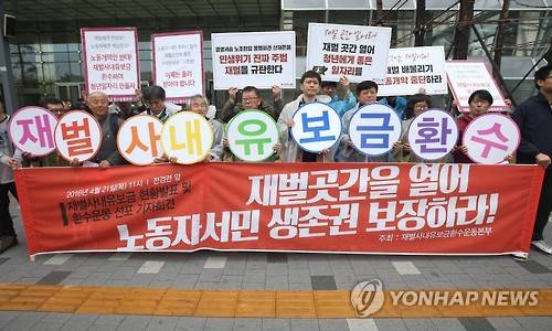 김현미 의원(더불어민주당)이 지난해 국정감사에서 발표한 자료에 따르면, 1835개 상장사 전체 사내유보금은 2008년 326조원에서 2014년 845조원으로 7년간 519조원(158.6%)이나 폭증한 것으로 나타났다. 국내 10대 재벌들의 사내유보금은 549조6326억원(2015년 말 기준)으로 1년 전보다 46조원이나 늘었다.