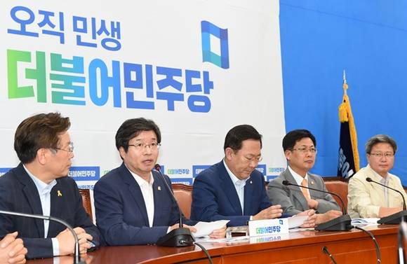 ▲기자회견후 더민주당 안행위 소속 국회의원과의 긴급간담회를 갖고 있는 6개 불교부단체장들(사진=수원시)