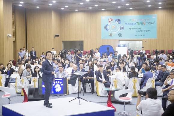 경기도는 4일 오후 2시 성남시 소재 경기창조경제혁신센터 국제회장에서 경기도의 도전! 리빌딩 코리아를 주제로 토크콘서트를 개최해 민선6기 지난 2년을 돌아보고 도민과 함께 저출산, 저성장 등 위기를 극복하기 위한 도정 방향을 모색했다.